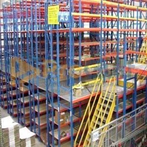 - Mezzanine floor racks are generally 2-3 stories, with flights of stairs and freight lifts.